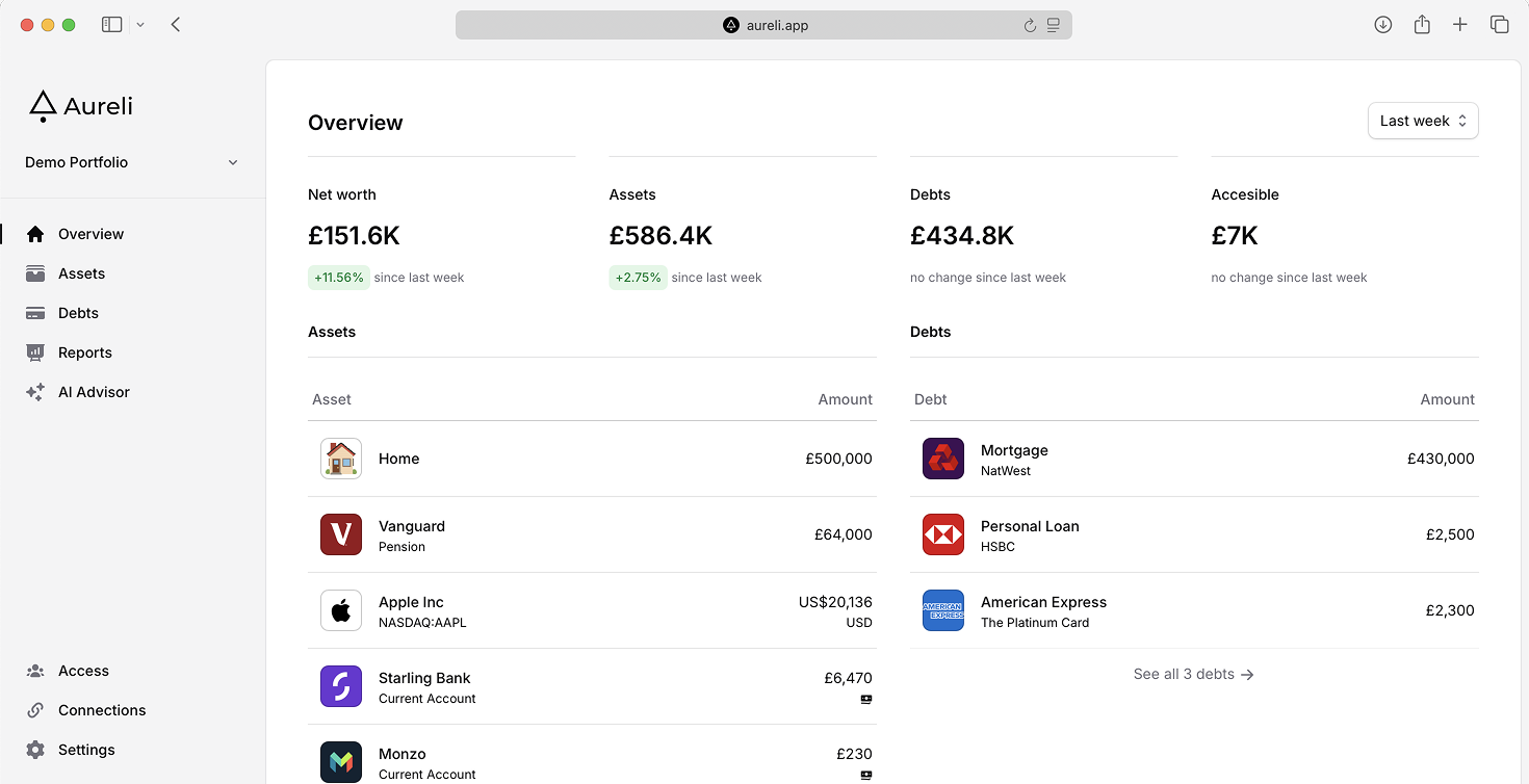Track how your net worth changes over time. Get insights into your portfolio.